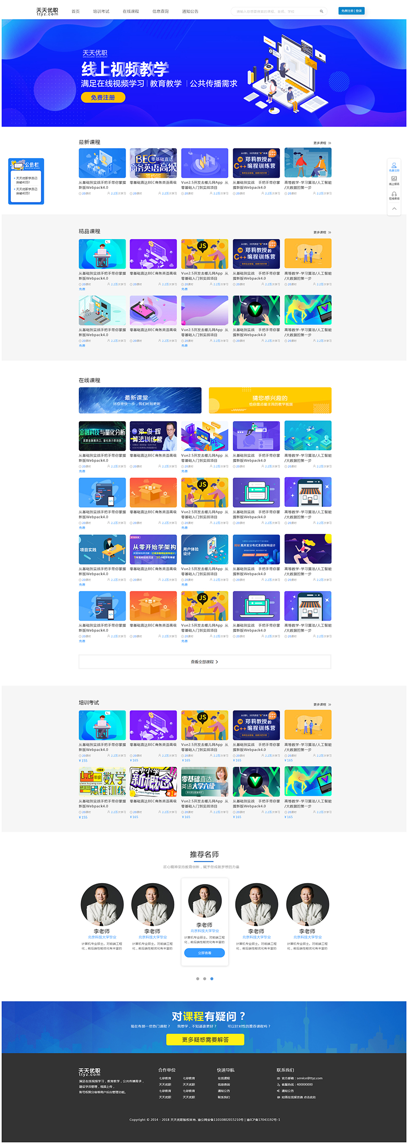 Project Description 满足在线视频学习,教育教学,公共传播需求, 建设学员管理,视频上传, 账号权限分级等商户后台管理功能 Official website address 虹口http://tiantianyouzhi.com/ I want to share